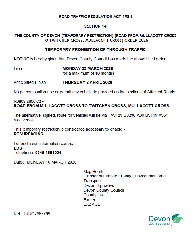 Many parishioners have requested that the speed limit is reduced and have raised concerns about speeding in the village and on Ilfracombe Hill. The Parish Council have been happy to facilitate the start of this process. The Chair of the Parish Council, Councillor Sue Ayre, has set up the West Down Community Speed Watch Group with Devon and Cornwall Police. Currently there are two members. There is a registration process and some online training to complete.