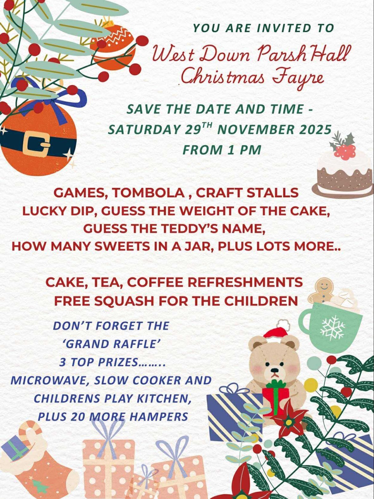 BOOKING CLERK: Keith Oades – Mobile: 07979 188107 Email: Westdownparishhallbooking@outlook.com