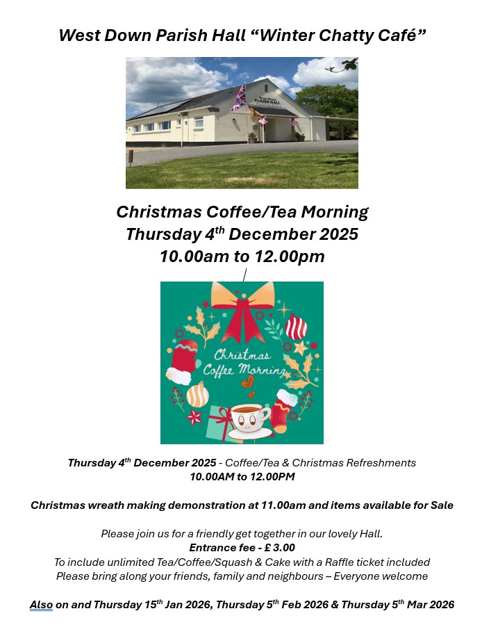 Social Groups – West Down Parish Hall Management Committee (new members welcome)